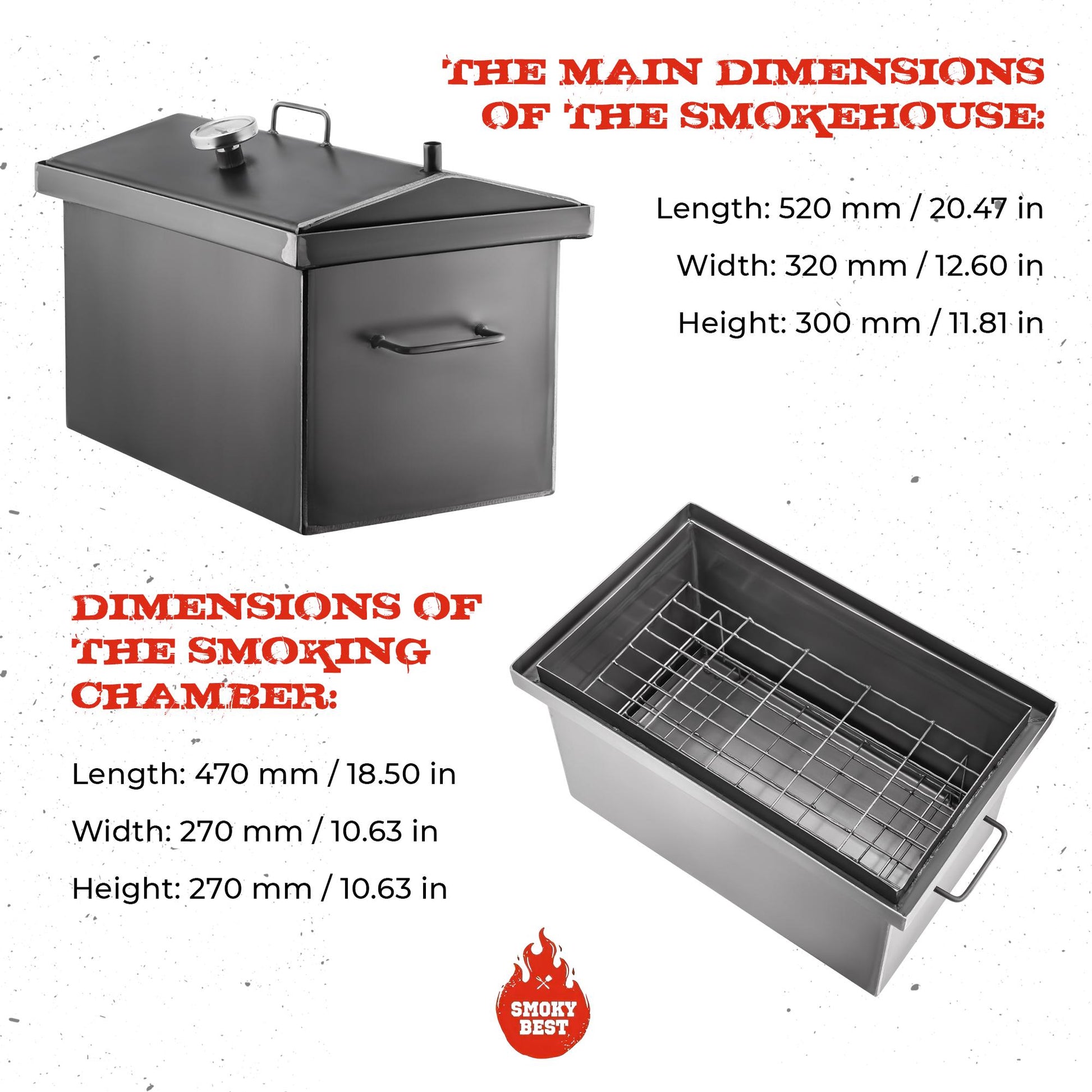🔥 Your Large Smoker with a Water Seal for Perfect Smoking! 🔥 Take your smoking experience to the next level with this large smoker designed for hot smoking. Whether you're hosting an outdoor BBQ or preparing smoked dishes at home, this smoker is perfect for meat, fish or vegetables. 🐟🍖🍆 With a water seal and an attached smoke exhaust hose, indoor smoking is safe and convenient - just direct the smoke through the window. Made from durable 2.0 mm thick metal, this smoker is designed to last, even for large batches. 📏 Technical details: • External dimensions: 520×320×300 mm (20.5×12.6×11.8 in) • Smoke chamber: 470×270×270 mm (18.5×10.6×10.6 in) • Capacity: Up to 8–9 kg of food per load (17.6–19.8 lbs) 🍗 • Weight: 13.5 kg (29.8 lbs) ⚖️ • Material: Durable metal with a thickness of 2.0 mm (0.08 in) 🛠️ • Heat sources: Compatible with grills, electric stoves and more 🔥 ✅ Why choose this smoker? • Extra large capacity: Ideal for cooking large portions of food, ideal for meetings and events. • Durable Construction: High-quality thick metal ensures long-lasting use. • Convenient Indoor Use: Includes a water seal and exhaust hose for safe, smoke-free indoor smoking. • Versatile: Great for meat, fish, vegetables, and more. • Perfect Gift Idea: A thoughtful gift for BBQ or cooking enthusiasts 🎁 ✨ Whether you're a beginner or a smoking pro, this large smoker will make it easy for you to create delicious smoked dishes for any occasion. Up your culinary game today! 🌟